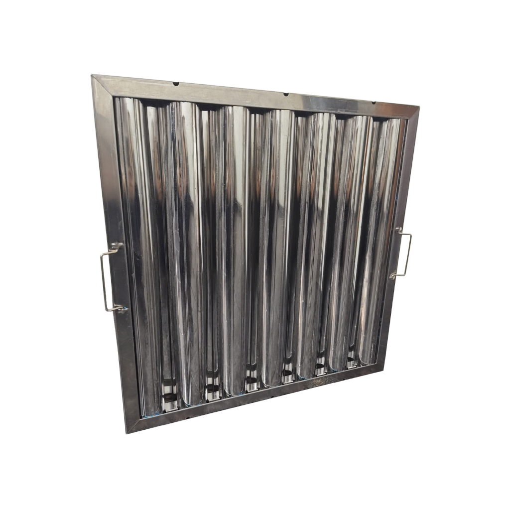 El filtro Decantador/ eliminador de grasa, se caracteriza por ser lavable y reutilizable, construido en acero inoxidable, con diseño de obleas verticales dispuestas en forma de laberinto. Actuando como protección del sistema de ventilación-extracción y así evitar la acumulación de grasa en los conductos.