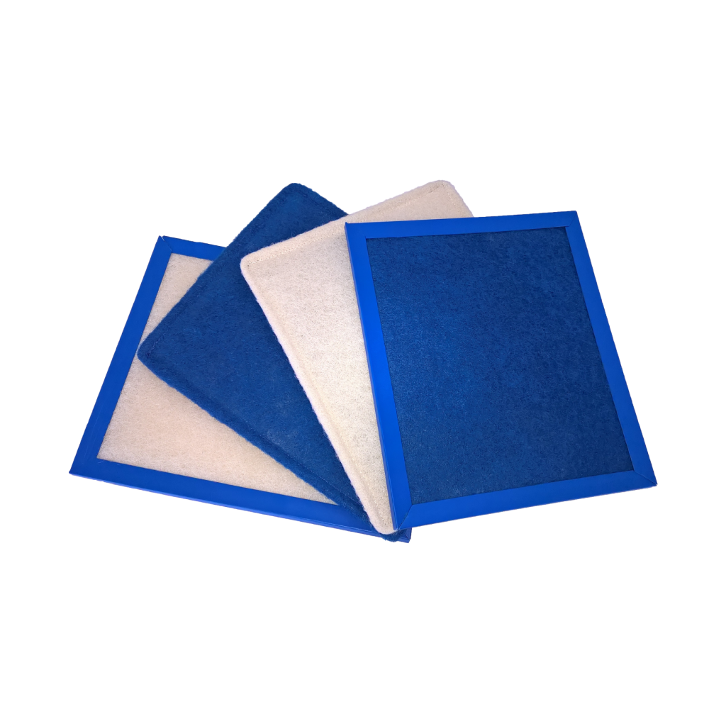 Media filtrante: Fibra de poliéster no tejida Marco: PVC – Alambre Arrestancia: 84% Resistencia final: 1,8″ C.A. Configuración: Lavable